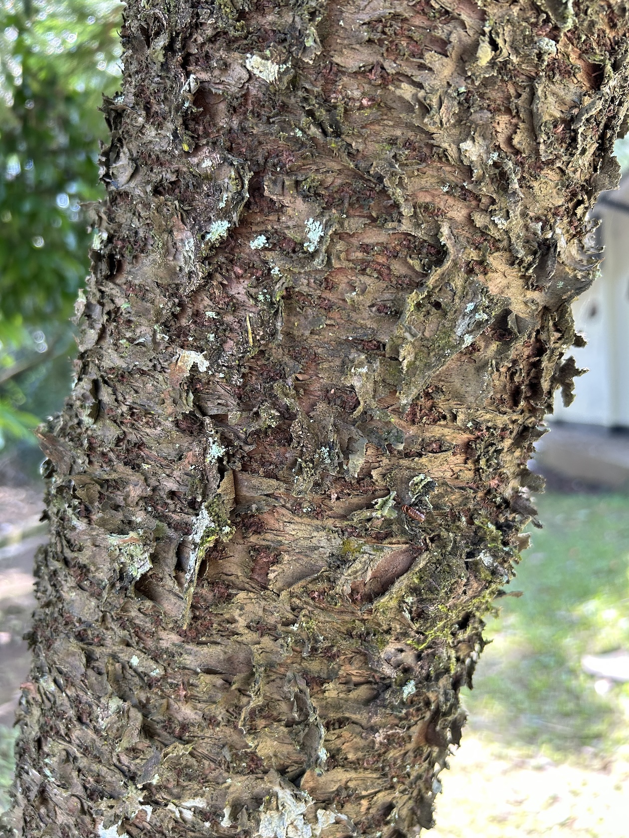 • Batang: Lurus dan tegak, dengan kulit batang berwarna abu-abu kecoklatan yang mengelupas dalam serpihan tipis.