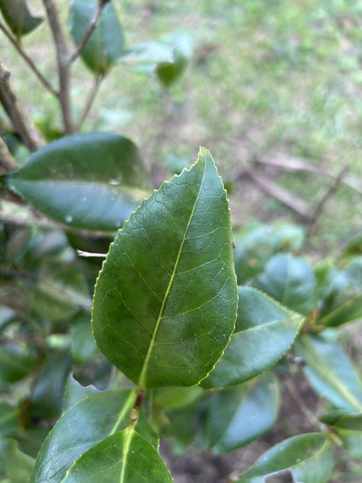 - Daun: Tunggal, berbentuk lonjong memanjang dengan ujung meruncing, berwarna hijau gelap mengkilap di bagian atas dan sedikit lebih pucat di bagian bawah. Daunnya tebal dan teksturnya halus.