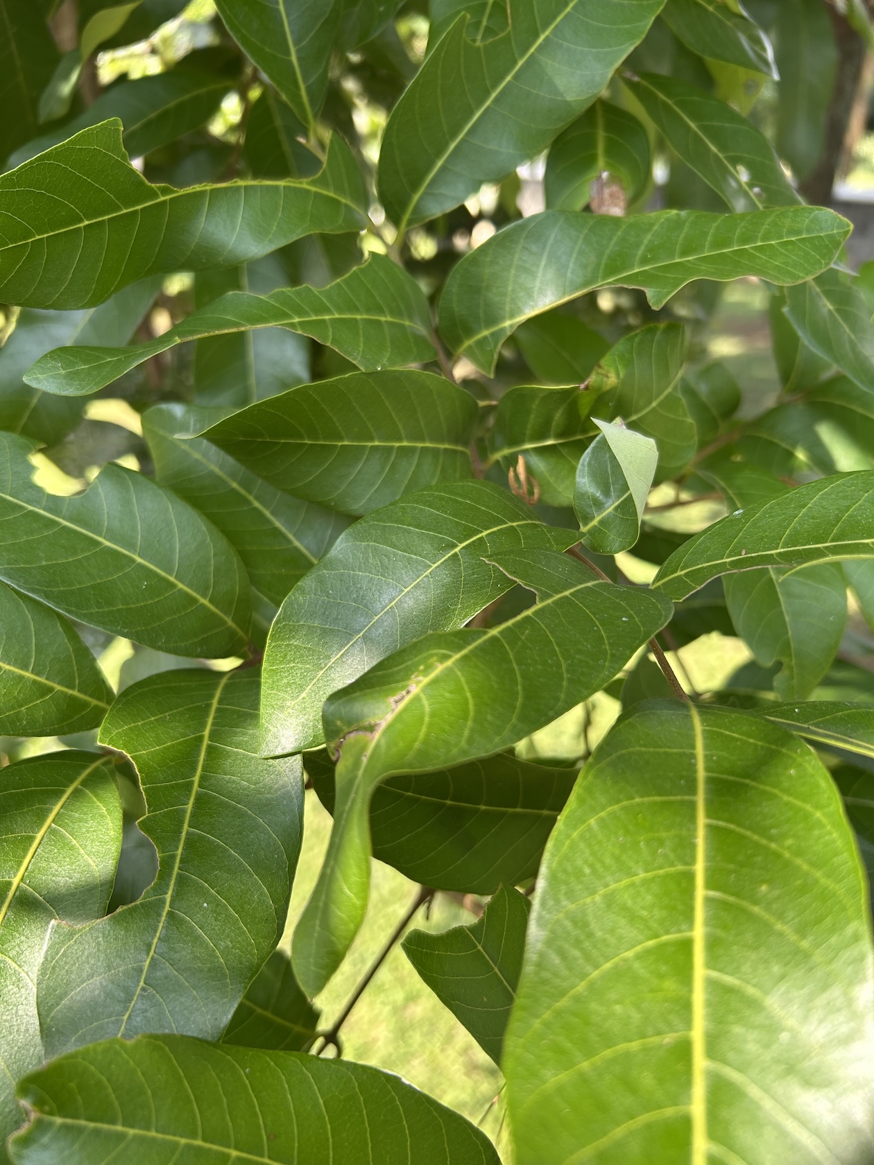 • Daun: Majemuk menyirip, terdiri dari 2-5 pasang anak daun. Anak daun berbentuk lonjong hingga lanset, berwarna hijau tua mengkilap di bagian atas dan hijau lebih pucat di bagian bawah. Daun muda seringkali berwarna kemerahan.
