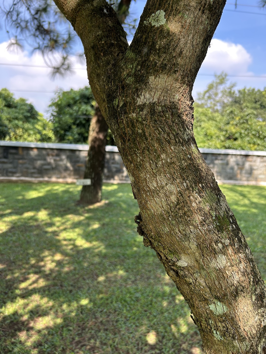 • Batang: Kulit batang berwarna abu-abu kecoklatan, relatif halus saat muda dan sedikit pecah-pecah atau bersisik seiring bertambahnya usia.