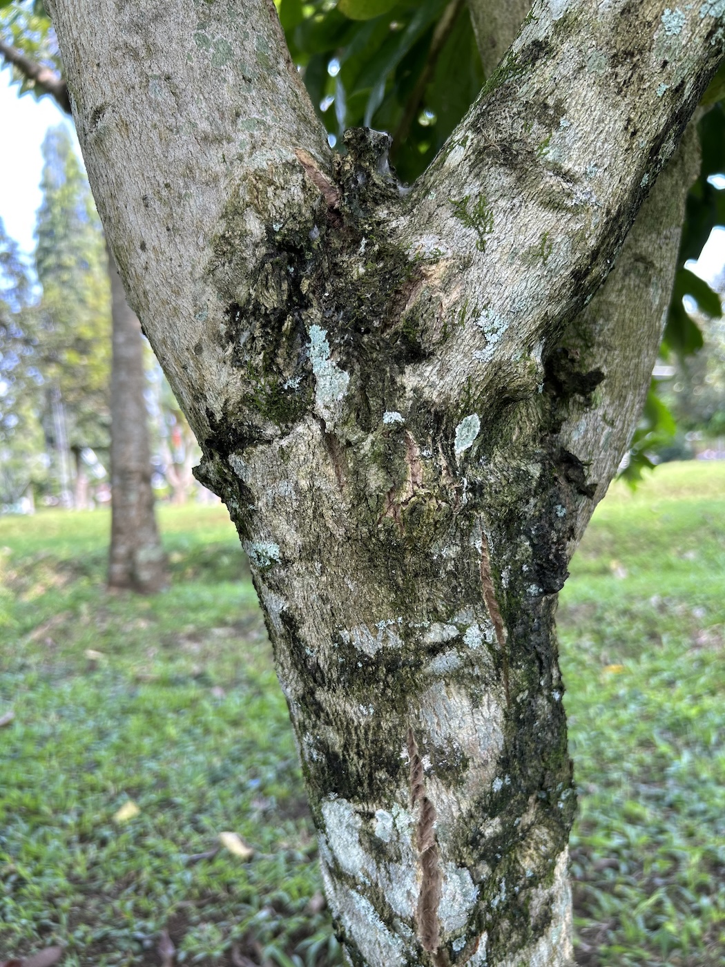 - Batang: Kulit batang berwarna abu-abu terang, kasar, dan beralur. Pohon ini memiliki karakteristik duri-duri tajam pada batang dan cabangnya.