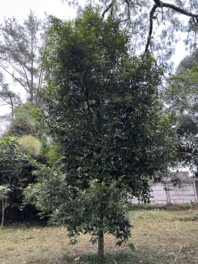 • Bentuk Pohon: Pohon berukuran sedang, tegak, dengan tajuk yang padat dan berbentuk kerucut atau bulat telur.